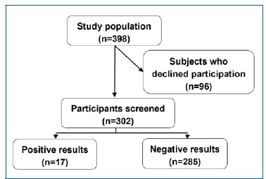 The present study design met an unexpected limitation: the high rate of rejection to participate. This situation was attributed to the embarrassment of being examined in front of colleagues and being busy working during the screening campaign. Interestingly, low levels of participation were one of the main limitations also documented in community-based studies.19 However, in future studies adopting the model of screening at the workplace, such limitation can be overcome by avoiding screening at the participants’ offices, and instead specifying a pre-planned and pre-announced schedule for participants in each department to be privately screened in a certain previously emptied office in their department.
