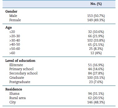 Regarding baseline data, the study included 153 males and 149 females, with a total mean age of 36.1 (±11.9) years. Most of the studied population was between 20 and 50 years of age and had between secondary school and university levels of education. This data is attributed to targeting employees who fit these criteria.
