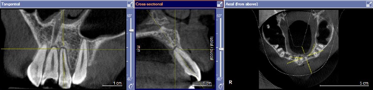 The DICOM (Digital Imaging and Communications in Medicine) images were viewed using a Galileos viewer 1.9. The DICOM data was reconstructed at 0.125 mm increments. All the teeth from the second molar on the right side to the second molar on the left side were checked for the presence of OIIRR.